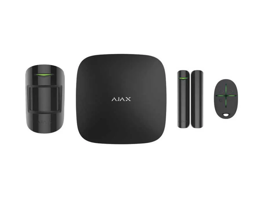 Ajax StarterKit, evler, apartmanlar, ofisler veya ticari mekanlar için kapsamlı bir güvenlik çözümü sunar. Set, hub kontrol paneli, hareket dedektörü, açılma dedektörü ve panik butonlu anahtarlık içerir.